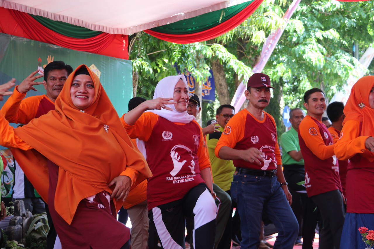 Suasana minggu (29/9/2019) pagi di sekitaran Alun-alun Bojonegoro nampak meriah. Terlihat ratusan orang dengan seragam kaos merah berkumpul di sepanjang Jalan Mas Tumapel atau di bagian timur Alun-alun.