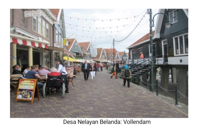 Segera, kami berpamitan dengan mereka, karena waktu yang terbatas. Segera pula, kami menuju ke arah Kampung Nelayan Vollendam. Meski tidak besar, kampung itu tertata rapi, bersih, dan nyaman. Di situ, banyak kafe dan restoran yang menyajikan sea-food. Tentu saja, kampung itu kan kampung nelayan.
