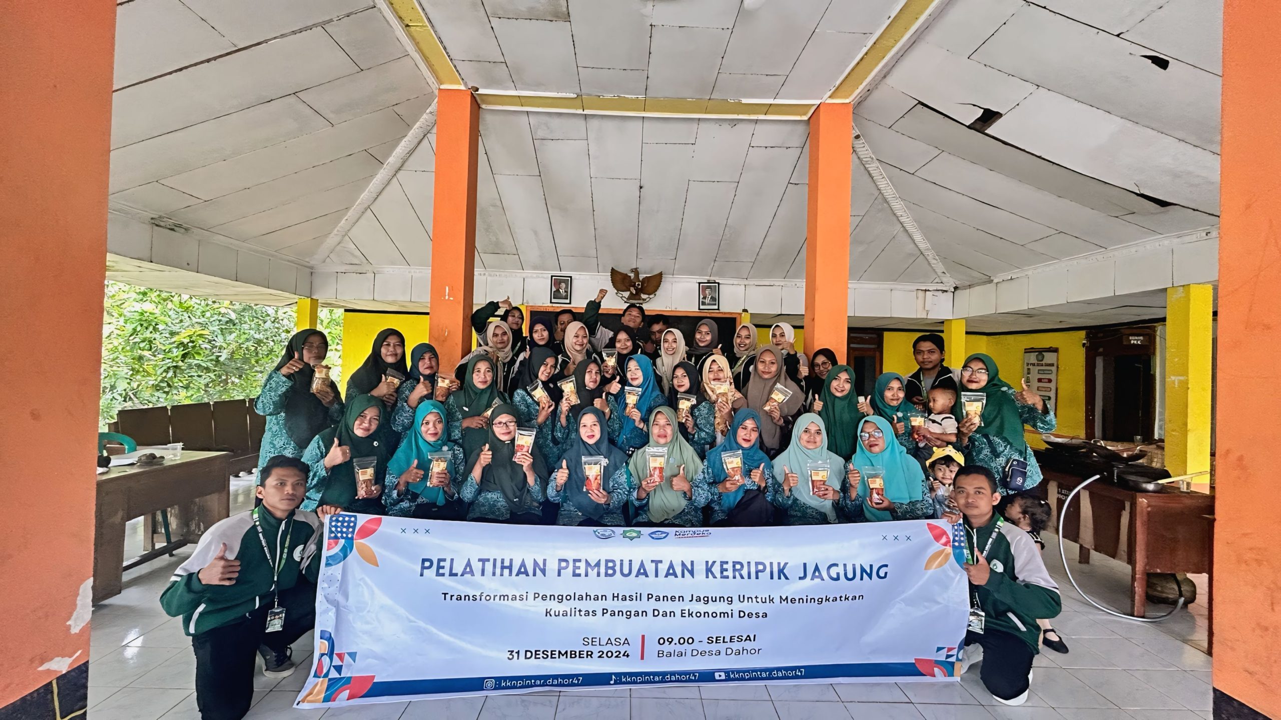 Pelatihan yang dilakukan bersama ibu ibu PKK Desa Dahor pada Selasa, (31/12/25). di Balai Desa Dahor. Pelatihan ini menghasilkan olahan keripik jagung dengan berbagai macam varian rasa, yang kemudian dikemas dengan menarik dan rapi.
