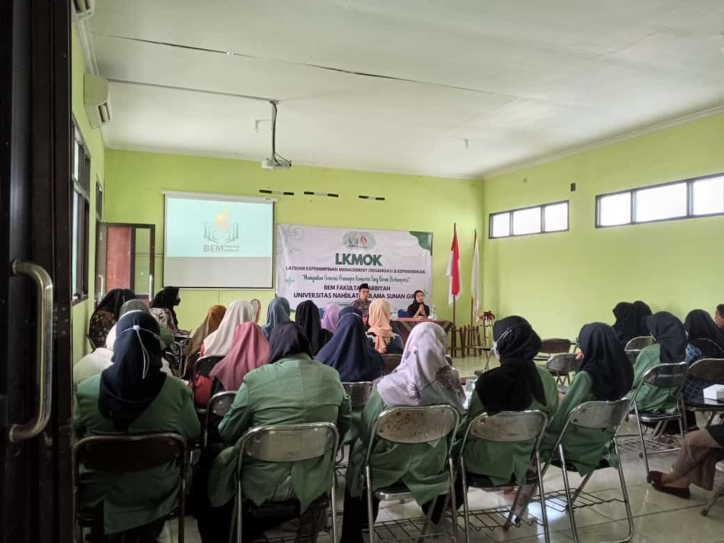 Badan Eksekutif Mahasiswa (BEM) Fakultas Tarbiyah Universitas Nahdlatul Ulama Sunan Giri gelar Latihan Kepemimpinan Menagement Organisasi dan Kependidikan (LKMOK) pada (07/08) di Lantai 3 Gedung FIK.