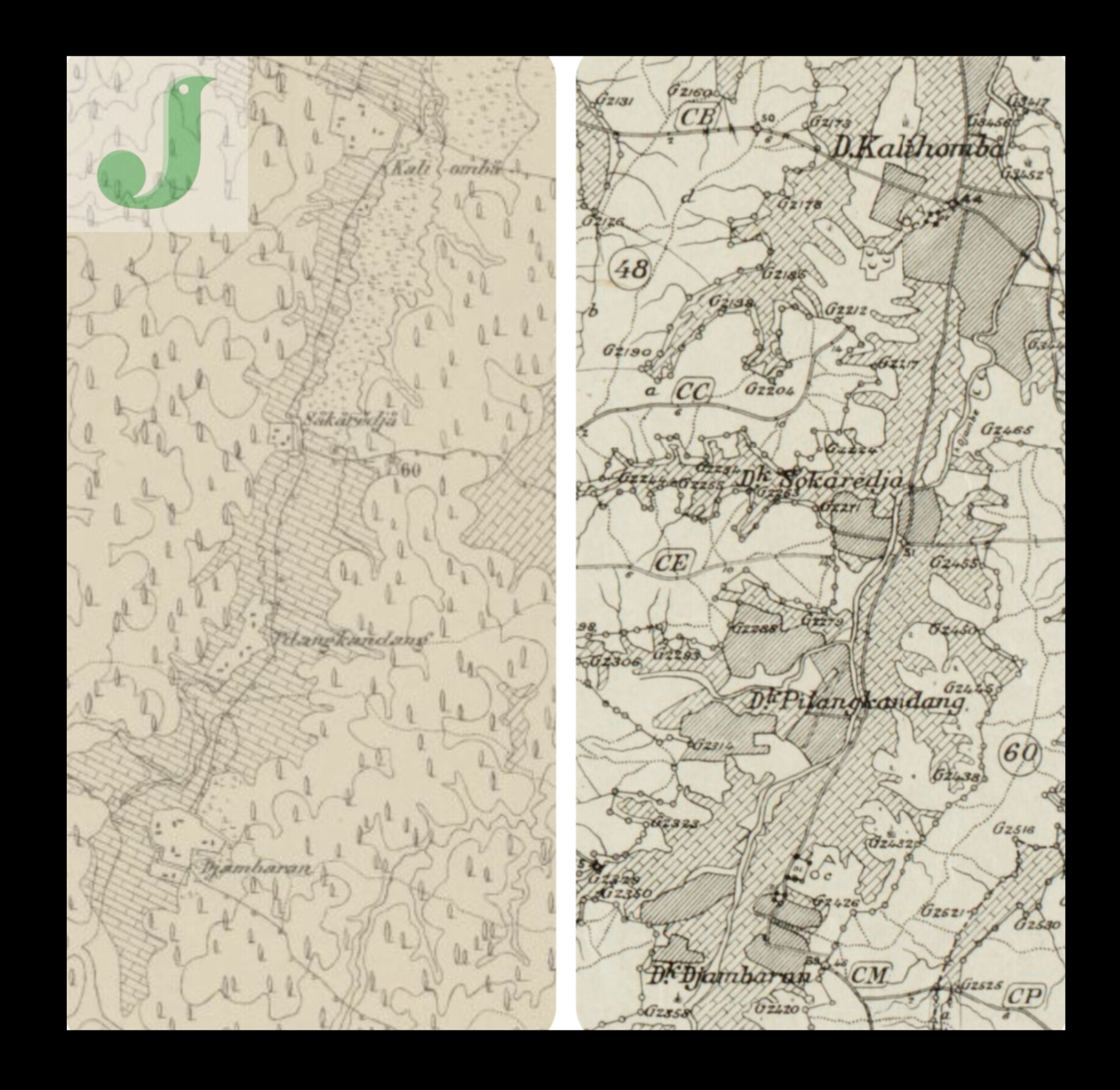 Dari peta abad 19 M, terlihat jelas bahwa Desa Kalihomba yang terdiri dari pedusunan Sukaredja, Pilangkandang, dan Jambaran belum terdapat peta potensi gas bumi. Namun pada peta abad 20 M, sudah terlihat bahwa Kalihomba, Sukaredja, Pilangkandang, dan Jambaran sudah dipenuhi tanda keberadaan potensi gas bumi.