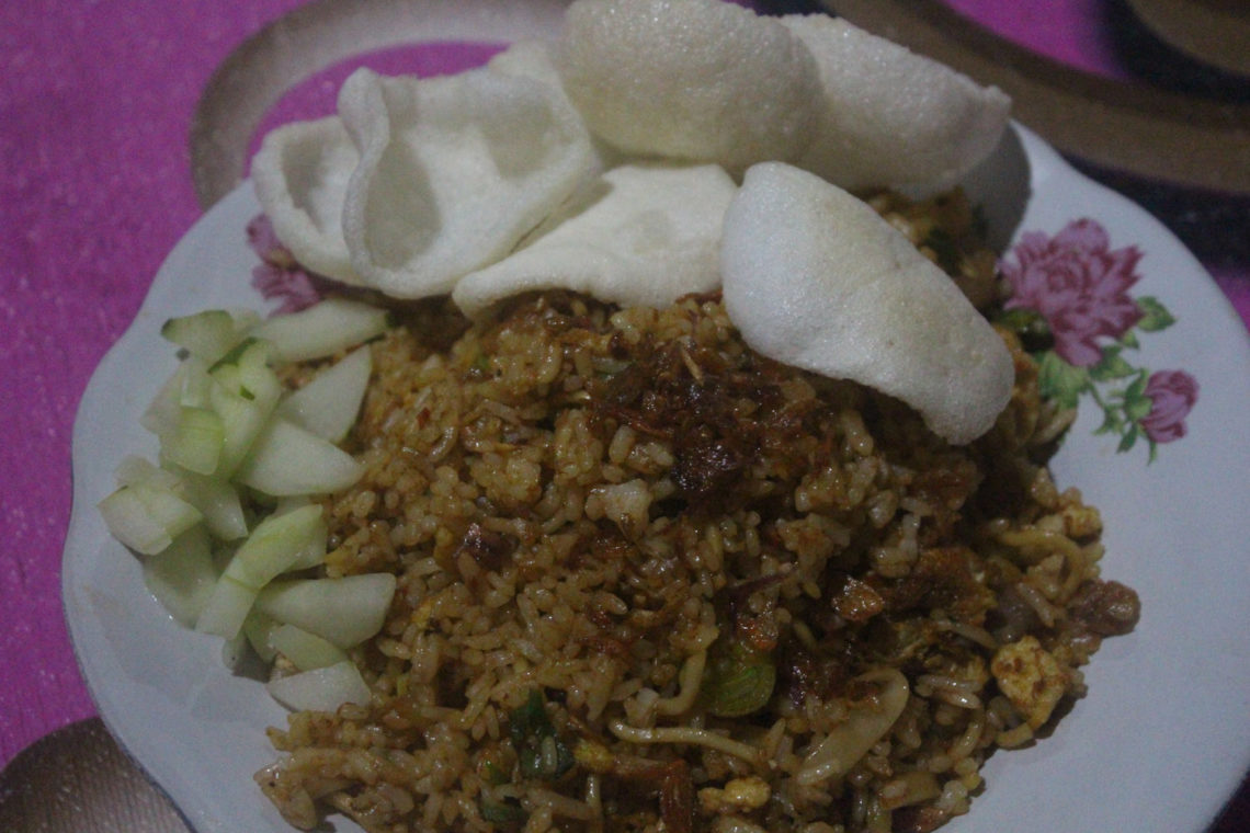 “Dulu saya jualan nasi goreng biasa. Tapi setelah nasi ruwet jadi populer saya nambahin menu itu juga. Ternyata banyak yang suka,” ungkap Pak Peng.