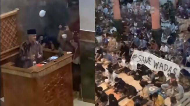 Hal menarik lain terjadi kemarin (6/4), yaitu ketika Ganjar sedang mengisi ceramah di Masjid UGM. Ada beberapa jamaah yang kemudian membawa spanduk bertuliskan “#SAVEWADAS”. Hal ini juga tak luput mendapat sorotan netizen. Ada yang mengatakan bahwa masjid adalah tempat suci, sehingga tak seharusnya dicemari urusan duniawi.