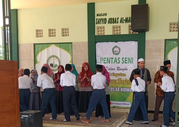 Di SMP Plus Ar-Ridwan Bojonegoro, Hari Guru Nasional tak hanya dirayakan dengan menebar poster ucapan. Para ustad-ustadzah, santri, beserta pengurus pondok mengadakan pentas seni untuk merayakan peringatannya.