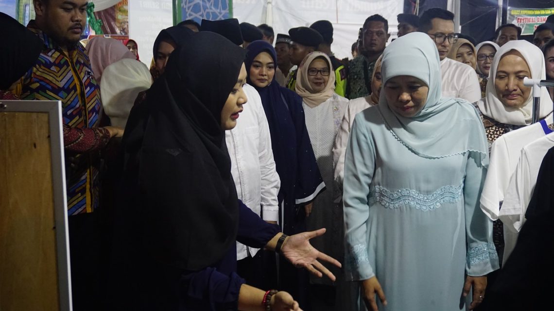 Ditemani istri Wakil Gubernur Jawa Timur Emil Dardak, Arumi Bachsin, Khofifah terlihat cekatan dan penuh semangat mengunjungi sejumlah stan di halaman Bakorwil Bojonegoro. Tak jarang Bu Gubernur juga tampak santai berdiskusi dengan para penjaga stan.