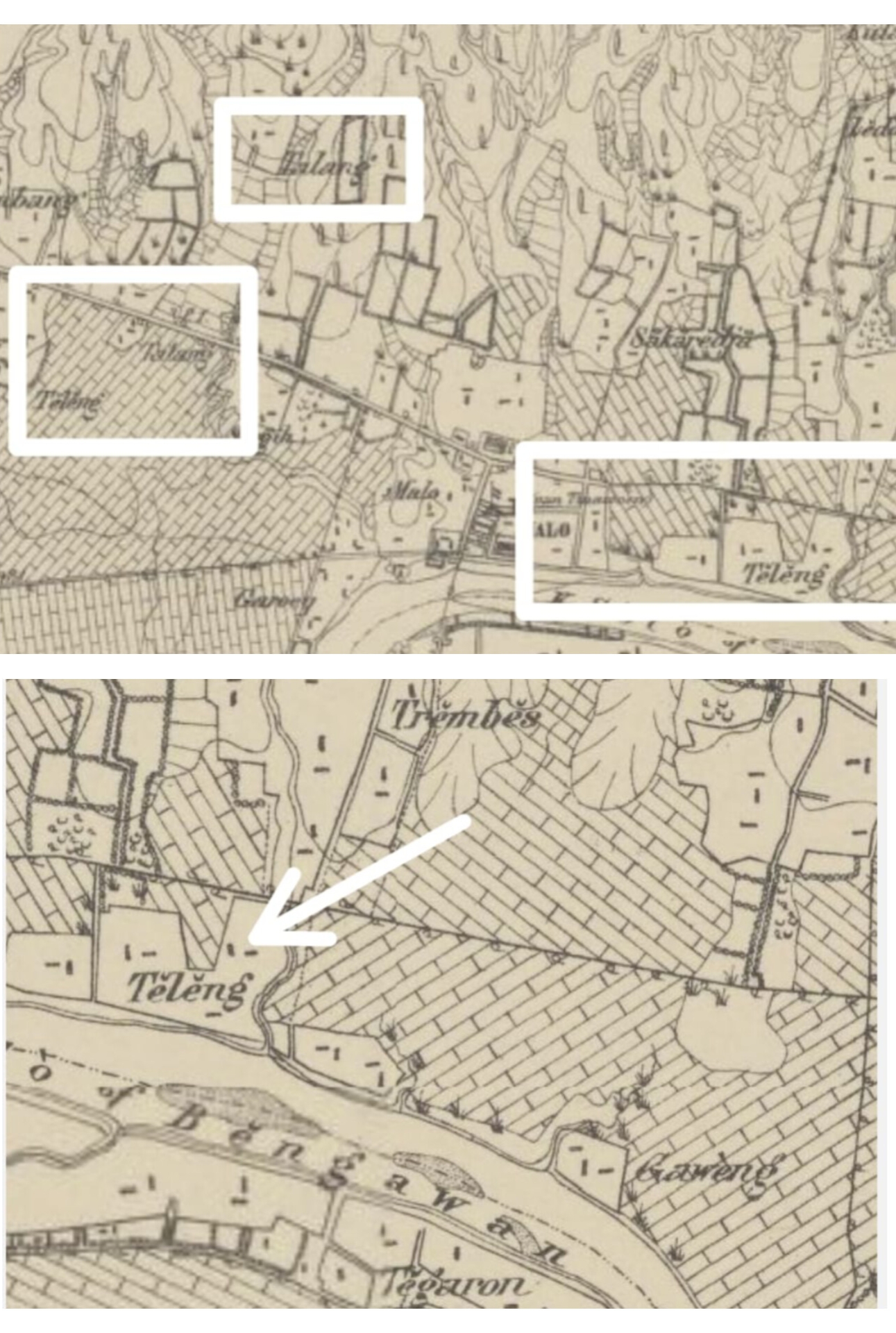 Telang, Peradaban Sungai yang hilang (sumber: Peta Leiden, 1870)