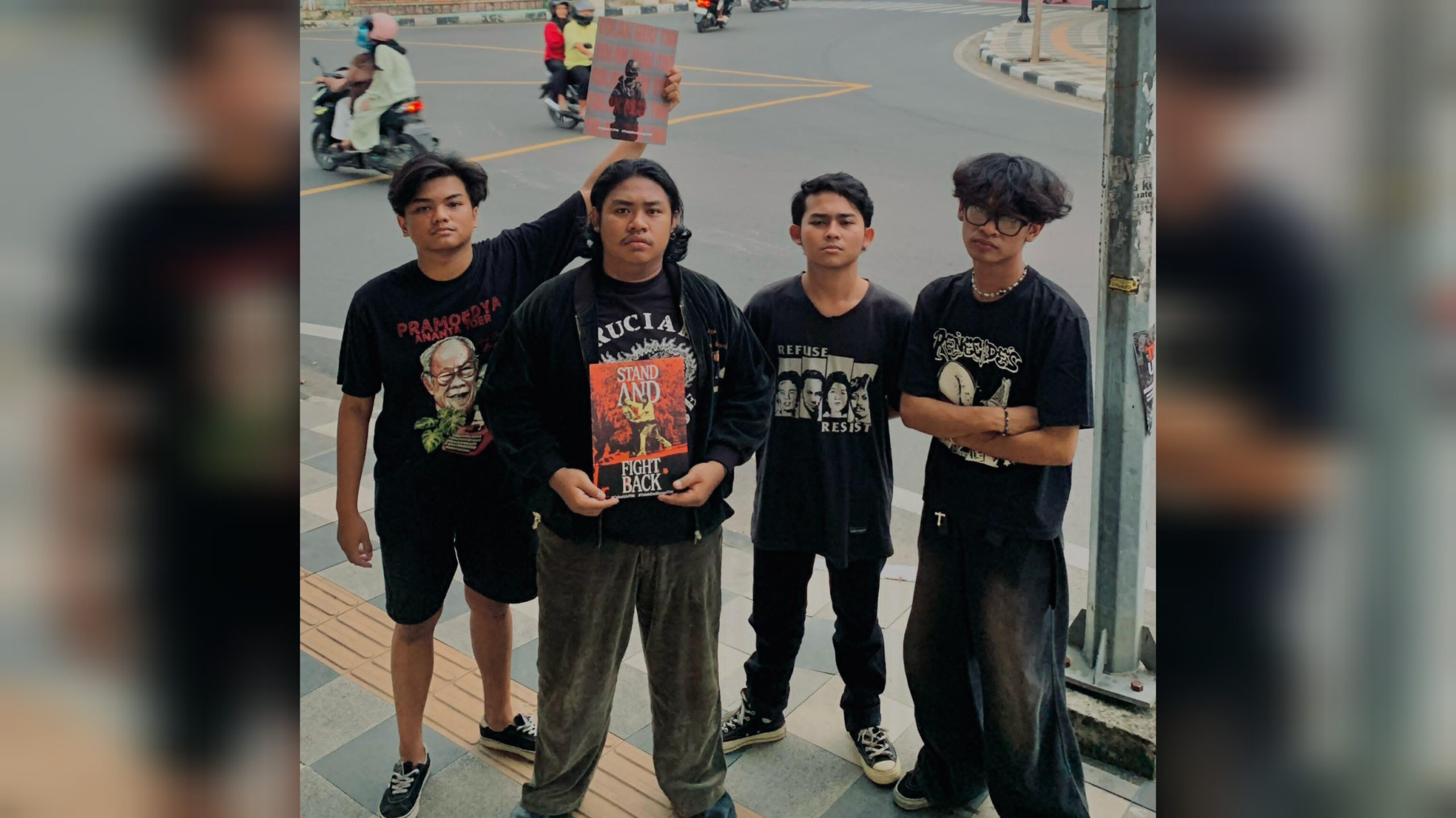 Tanpa ketua dan koordinator, mereka berjalan bersama menelusuri ruas Jalan Imam Bonjol hingga Jalan Panglima Sudirman dengan membawa poster dan selebaran kertas berisikan selayang pandang penolakan mereka terhadap UU TNI yang disahkan Kamis lalu (20/3).