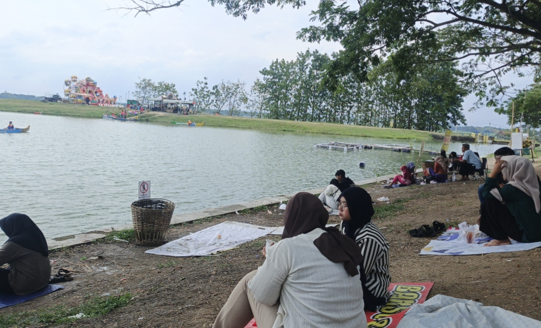 ”Sangat ramai, terutama suasana libur lebaran ini” ucap Ibu Munawarah, salah seorang pedagang makanan di Waduk Norjo (29/3/2026).